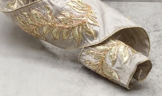 3" Luxury Medium Gold Ribbon Mesh Laser Cut Leaves Victorian Vintage style