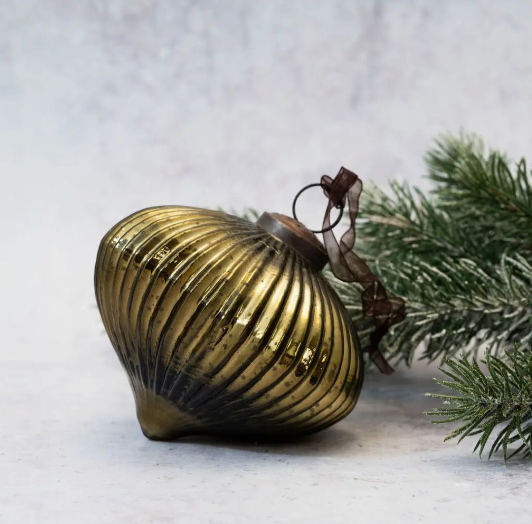 Luxury Diamond-Shaped Olive Striped Glass Christmas Ball – 4"