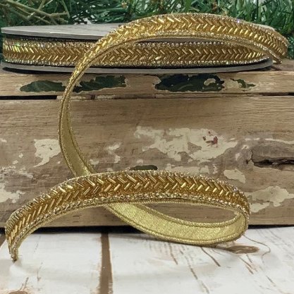 Introducing our Very Small Luxury Chevron Gold Ribbon with Beads—a delightful and opulent addition to infuse Victorian vintage style into your Christmas decor and gift wrapping. The intricate chevron pattern in gold, adorned with tiny beads, creates a ribbon that exudes sophistication and timeless elegance. Perfect for a Victorian or Vintage Christmas theme, this very small-sized ribbon is crafted to make a statement in a refined and delicate manner. Create bows that capture the opulence of a bygone era or use it to wrap small gifts with a touch of Victorian-inspired charm. The Very Small Luxury Chevron Gold Ribbon with Beads promises to bring a luxurious and vintage element to your Christmas celebrations, adding a touch of classic beauty to your festive decorations.