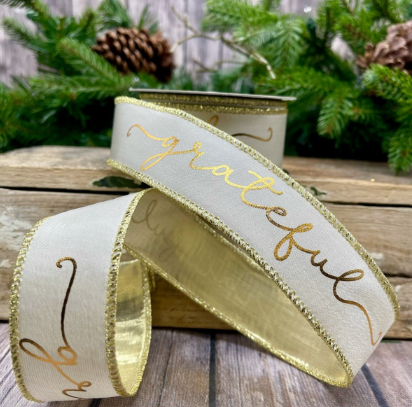 Our Small White Ribbon with Gold Grateful Cursive Font is a delicate and elegant addition to enhance your Christmas decor and gift wrapping. The crisp white ribbon, featuring a cursive "Grateful" in shimmering gold, creates a ribbon that exudes sophistication and a touch of heartfelt sentiment. Perfect for a Minimalist or Elegant Christmas theme, this small-sized ribbon is crafted to make a statement. Craft bows that capture the essence of gratitude or use it to wrap gifts with a touch of refined elegance. The Small White Ribbon with Gold Grateful Cursive Font promises to bring a touch of holiday sophistication and heartfelt expression to your Christmas celebrations, adding a classic and festive element to your festive decorations.