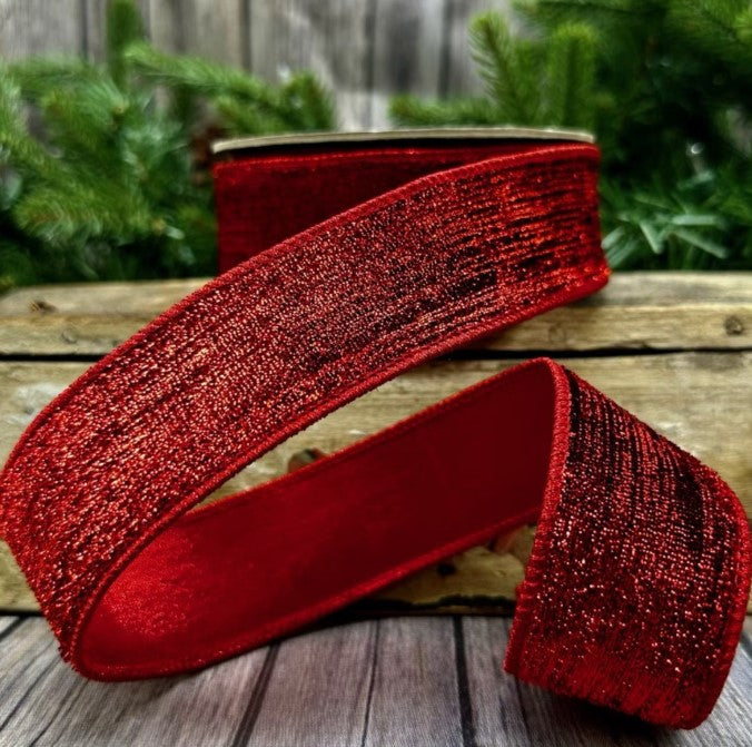 - 1.5" x 10yds metallic velvet matching metallic back, red